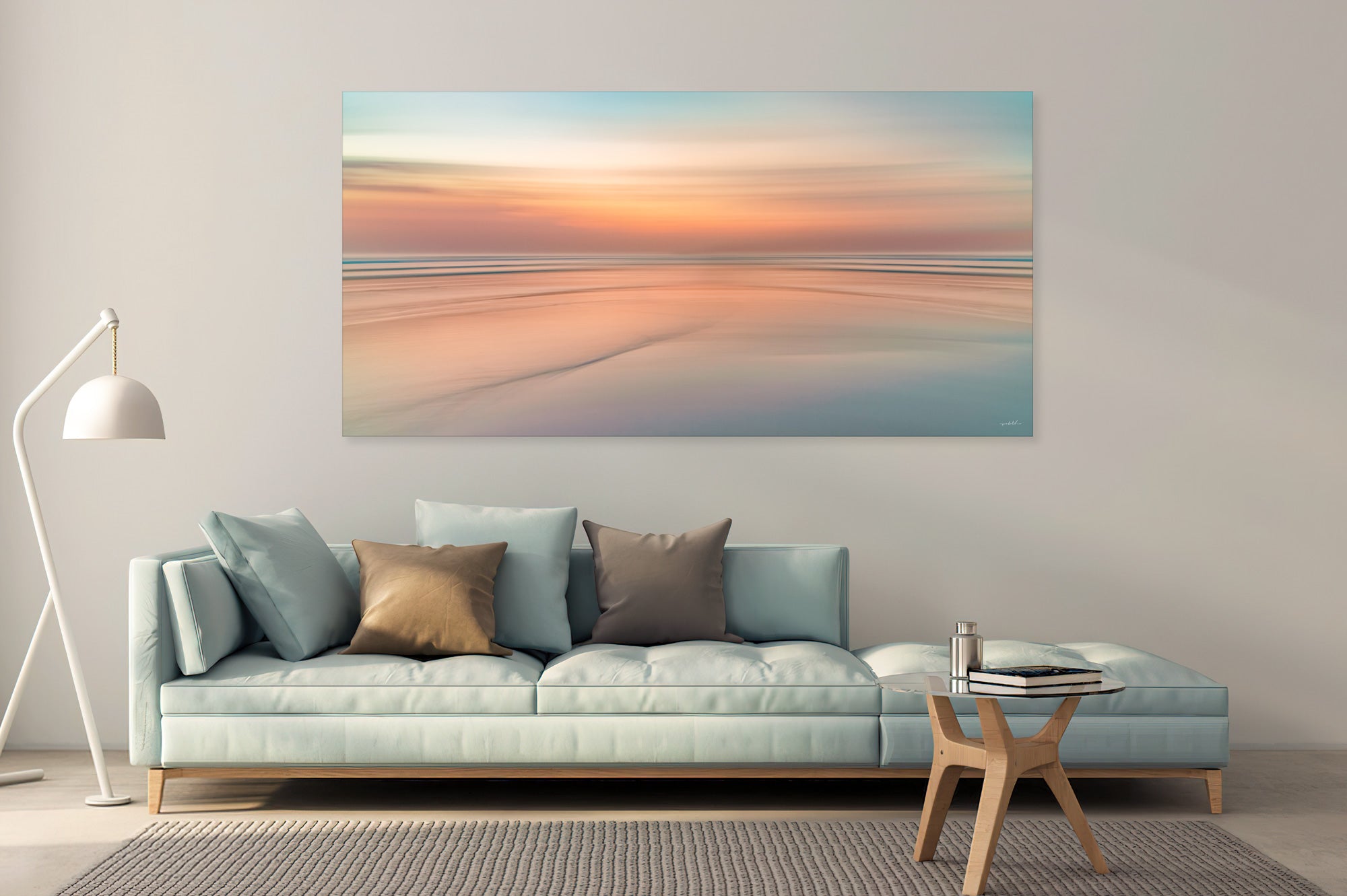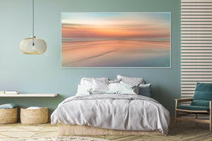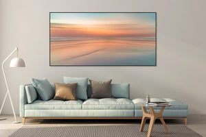 Soft coloured (light salmon/orange touches of blue) Seafront Silky Painting on a beautiful evening sunset abstract. For international orders, we ship prints rolled in tubes, so please send me an inquiry via email with your address and print of choice.