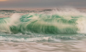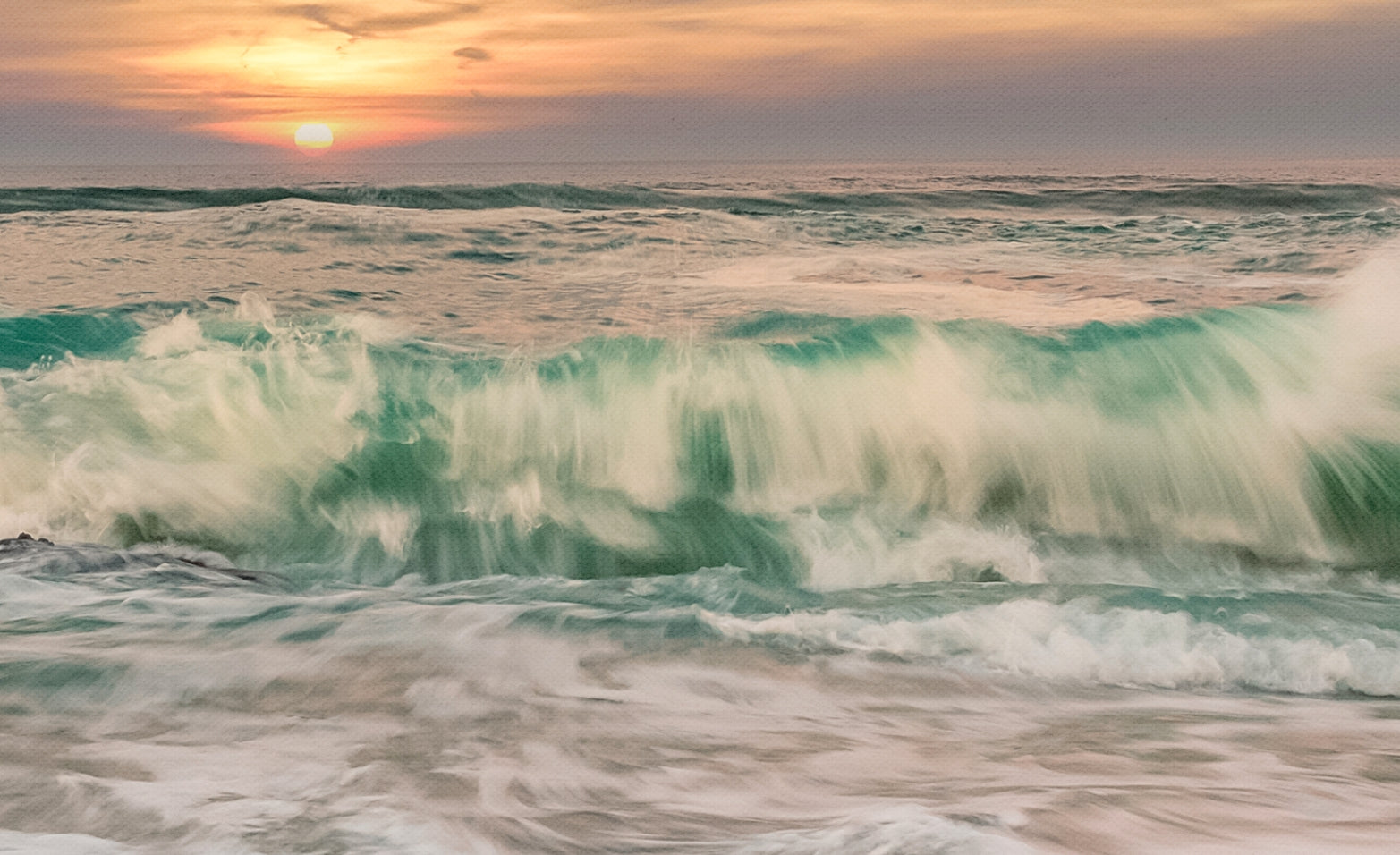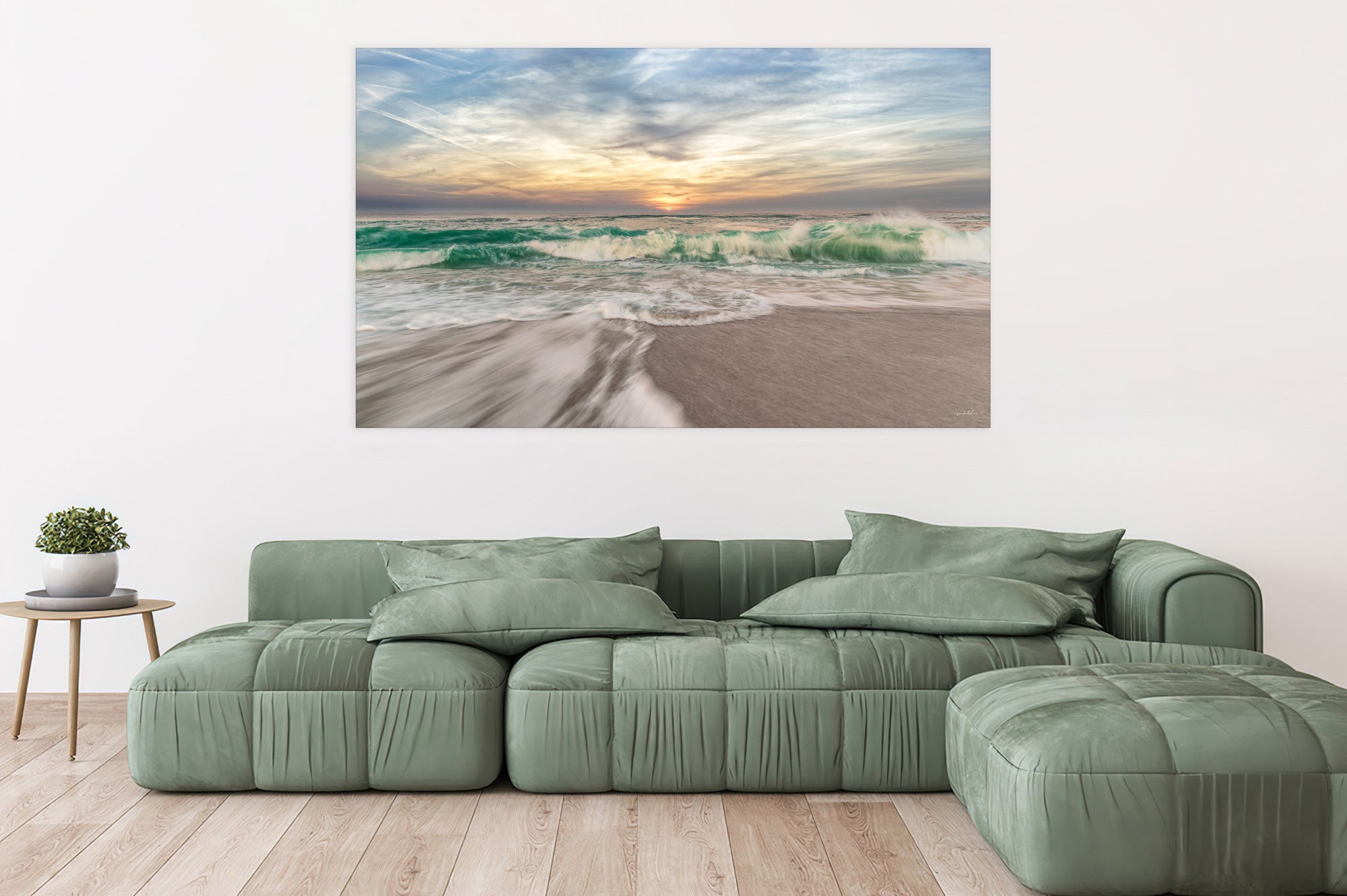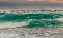 Soft pastel-colored seascape sunset with salmon/orange sky and dramatic waves, cloudy sky low point of view. For international orders, we ship prints rolled in tubes, so please send me an inquiry via email with your address and print of choice.