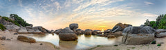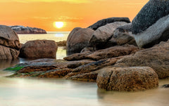 Vibrant and colorful seascape sunset. Cape Town, South Africa. This image can be printed 6w x 2.7h meters. For international orders, we ship prints rolled in tubes, so please send me an inquiry via email with your address and print of choice.