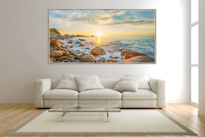 Ryno Botha, Canvas, large, print, art, seascape, sunset, ocean, beach, wood Frame, glass acrylic, perspex, rocks, kelp